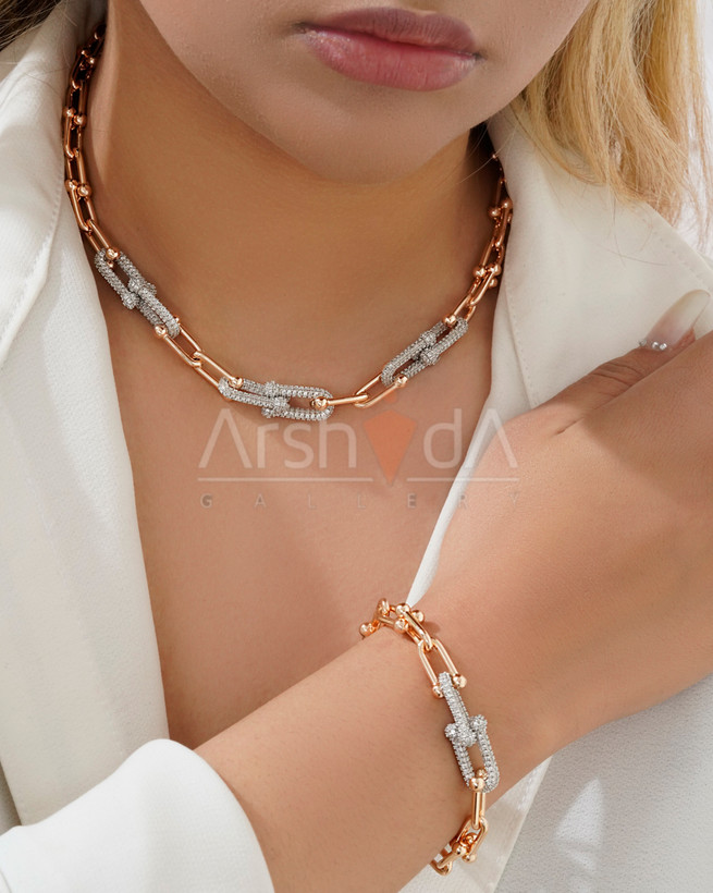 یکی از ویژگیهای متمایز این سرویس، طراحی خاص زنجیرهای در همتنیده با تلفیق رنگهای شامپاینی و نقرهای است که باعث میشود در هر زاویهای بدرخشد. قفل اصلی مستحکم باعث اطمینان خاطر در هنگام استفاده شده و احتمال باز شدن ناگهانی را کاهش میدهد.