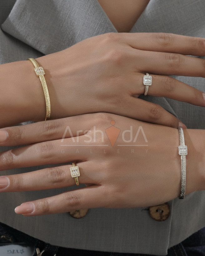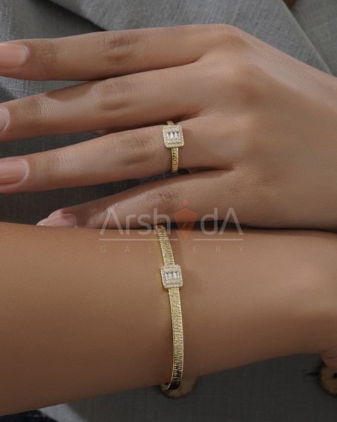 ست زنانه دستبند و انگشتر نگین‌دار با آبکاری طلا ۱۸ عیار و پوشش نانو