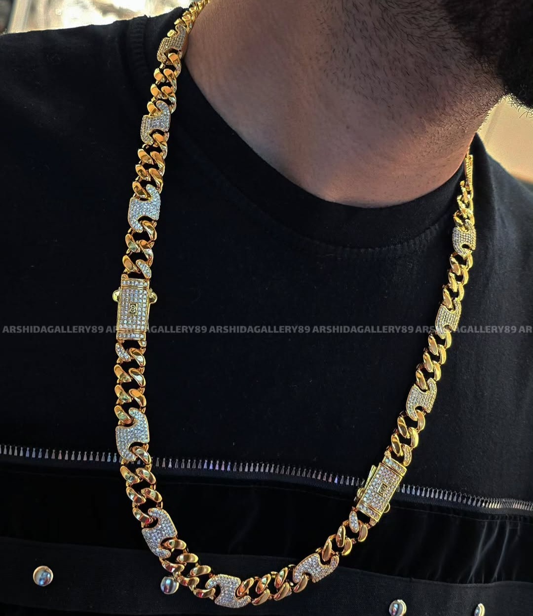 آبکاری طلای ۱۸ عیار و پوشش نانو باعث درخشش بیشتر، رنگ ثابت و مقاومت بالا در برابر خط و خش شده است. با پهنای ۱۲ میلیمتر، جلوهای لوکس و جسورانه به استایل شما میدهد. طول گردنبند ۴۵ سانتیمتر و دستبند ۱۹ سانتیمتر است که با اتصال این دو به هم، میتوان به راحتی یک گردنبند بلندتر نیز ایجاد کرد. این ویژگی، استفاده از این ست را منعطف و هوشمندانه میسازد.